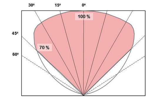 Grafik FOV detektor umumnya berbentuk menyerupai tetesan air mata, menunjukkan distribusi sensitivitas deteksi dari detektor tersebut.